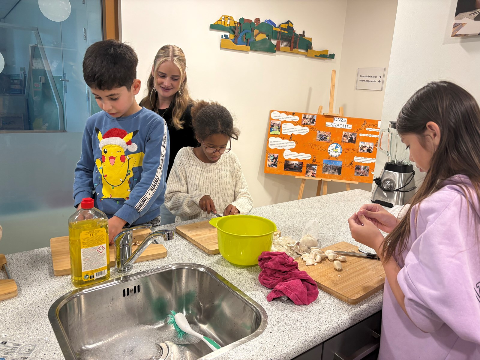 Vandaag was het weer tijd voor de KinderKookClub en de kinderen gingen op reis naar Italië. Twee kinderen uit elke groep hebben macaroni gemaakt.