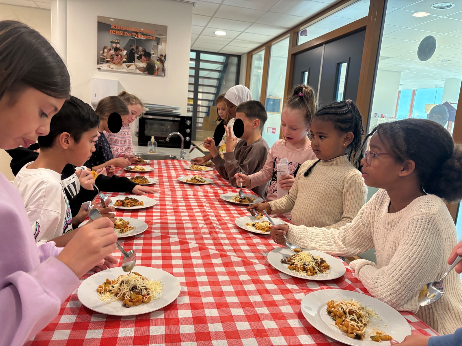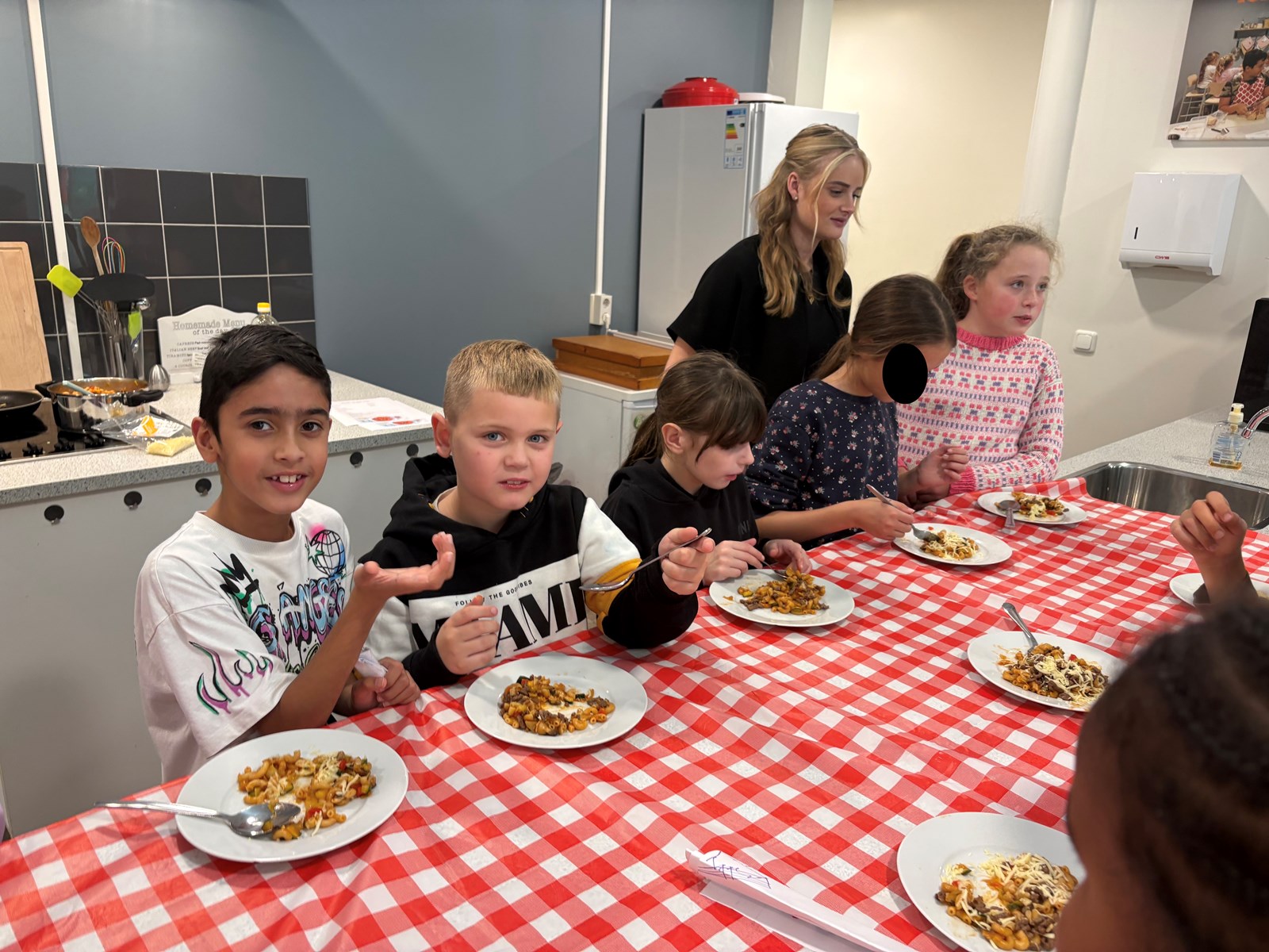 De kinderen hebben heerlijk gegeten van de macaroni!