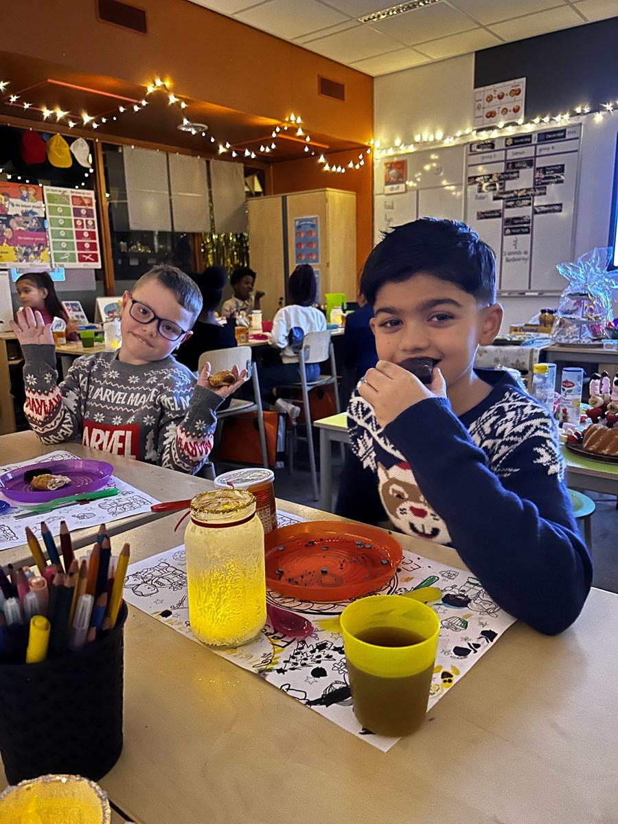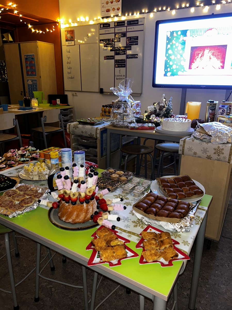 Gisteravond hadden wij het Kerstfeest in groep 3/4! We startten de avond met de herdertjestocht van groep 7. Daarna gingen we terug naar de klas en daar stond al het lekkers al op ons te wachten. Iedereen had een glazen potje versierd met daarin een lichtje. Ook had iedereen een eigen placemat gekleurd. Dat zag er erg gezellig uit! Kortom, het was een fijne en gezellige avond! Vandaag hebben we alles opgeruimd en klaargezet voor na de kerstvakantie.